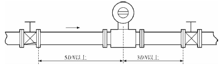 補水流量計的安裝質(zhì)量對其測量結(jié)果的影響較大,因此在安裝時需要注意幾個問題。*先,補水流量計直管段的選擇在配管時一定要按照要求進行選擇,一般選擇流量計通徑與工藝管道通徑相同,即可滿足工程需要,而且安裝方便、壓力損失小,流量計直管段上游側(cè)的長度不少于5倍工藝管道直徑,下游側(cè)的長度不少于3倍工藝管道直徑(圖2)。但在流速太慢而又要求精度較高或需要變徑的應用場合,可選擇通徑小于工藝管道通徑的流量計,以提高測量精度,此時流量計上、下游必須加裝異徑管,且進口異徑管上游側(cè)應有長于10倍工藝管道直徑的直管段,下游側(cè)應有長于5倍工藝管道直徑的直管段(圖3)。