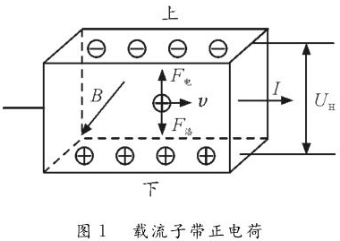 反之,如圖2所示,若載流子帶負電荷,則載流子在洛倫茲力作用下會向下偏轉(zhuǎn),導(dǎo)體下表面積累負電荷。同時,上表面失去負電荷而帶上正電,從而使上表面電勢高于下表面。