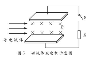 【例1】圖5為磁流體發(fā)電機示意圖。設(shè)兩金屬板間的距離為d,兩*板間勻強磁場的磁感應(yīng)強度為B。等離子體垂直進入磁場的速度為v,單個離子所帶的電荷量為q。離子通道(即兩*板內(nèi)所圍成的空間)的等效電阻為r,負載電阻為R。則下列判斷正確的是( ?。?br/>A。該發(fā)電機的電動勢E=Bdv