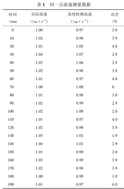 由表 2 測量數(shù)據(jù)可知,系統(tǒng)在測量低流速液體時(流速小于 1 m/s)誤差較大,達到 5%,當待測液體的流速增大時(大于 1.4 m/s),誤差逐漸減小,基本維持在 3%以內。由此可見系統(tǒng)具有較高的檢測精度,尤其是當管道中的液體流速較高時,系統(tǒng)的檢測誤差不超過 3%,達到了設計預期。