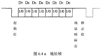 紙漿流量計等節(jié)點設備和站內(nèi)PC機間的通信采用異步串行通訊控制規(guī)程,并采用地址位喚醒握手協(xié)議。因此在協(xié)議中規(guī)定了傳地址和傳數(shù)據(jù)兩種不同的幀格式,如圖.64所示。地址幀和數(shù)據(jù)幀由11位構(gòu)成,幀格式為l位起始位,l位停止位,8位數(shù)據(jù)位,1位*9位。我們將*9位設定為“地址/數(shù)據(jù)指示位”,用來區(qū)分所發(fā)送/接受的幀信息是地址幀還是數(shù)據(jù)幀。*9位為1,表示PC機發(fā)送/接受的是“地址幀”*9位為O,表示主機發(fā)送/接受的是“數(shù)據(jù)幀”。命令幀與校驗和的發(fā)送格式與數(shù)據(jù)幀相同,因此可由數(shù)據(jù)幀演化得到。