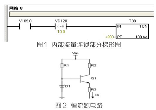 (2)PLC及模塊。PLC及模塊是自動化控制系統(tǒng)主要設(shè)備,且PLC及模塊屬于高集成高精密電子設(shè)備,保持室內(nèi)整潔舒適,可以提高自動化系統(tǒng)運行穩(wěn)定性。PLC及模塊硬件運行可靠,內(nèi)部控制程序是其控制核心軟件,如PLC硬件出現(xiàn)故障或損壞一般直接更換,但原內(nèi)部控制軟件無法上傳,整個控制系統(tǒng)成失控狀態(tài)。所以其內(nèi)部控制程序在調(diào)試驗收合格后應(yīng)及時備份并做好標(biāo)記,為以后修復(fù)PLC故障提供保障。PLC系統(tǒng)的維護技術(shù)人員需掌握一定基礎(chǔ)PLC控制邏輯原理,對準(zhǔn)確判斷PLC故障點有很大的幫助。例如選礦廠水泵房S7-200系列PLC自動抽水系統(tǒng)出現(xiàn)如下故障 :觸摸屏能控制變頻器啟動水泵抽水,但在短時間內(nèi)會自動停泵,導(dǎo)致無法正常抽水。通過故障現(xiàn)象可初步判斷PLC及模塊硬件設(shè)備正常,主要由于某個變量有問題導(dǎo)致連鎖停機。打開備份PLC控制梯形圖程序進行相關(guān)分析,原來是氨水流量計瞬時流量數(shù)值做了連鎖,其在一定時間內(nèi)瞬時流量不大于10m 3 /h時,自動停泵,電磁流量模擬量輸出電流值僅為4ma且無變化,確定氨水流量計有故障。可臨時應(yīng)急維修,模擬量模塊輸入模擬電流值10ma~20ma之間一固定數(shù)值即可恢復(fù)正常運行。制作簡單恒流源電路代替氨水流量計輸出的模擬電流量,實現(xiàn)解決水泵無法正常運行的故障。