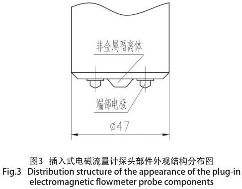 通過大量的試驗(yàn),對探頭端部外型結(jié)構(gòu)亦采用特殊設(shè)計(jì),從而消除兩個(gè)電*之間的擾流現(xiàn)象,同時(shí)亦消除因通電產(chǎn)生磁場,導(dǎo)致兩個(gè)電*吸附介質(zhì)中的鐵屑而影響測量精度和死區(qū)效應(yīng),增強(qiáng)了輸出信號的穩(wěn)定性,從而提高傳感器準(zhǔn)確度和抗干擾性。通過結(jié)構(gòu)的優(yōu)化設(shè)計(jì),使用壽命更長,消防水泵流量計(jì)探頭局部,如圖 3 所示。