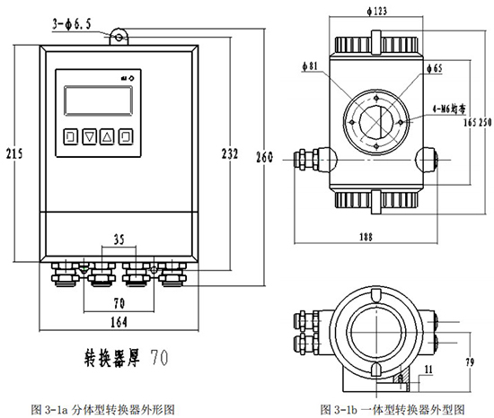 2.5.2 水泥漿流量計(含傳感器)外形及連接尺寸(見圖 2-2,表 2-4)