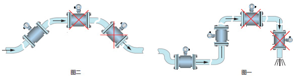 ⑾不同液體的混合介質(zhì),在混合點的下游,*小DN×30(DN為流量計公稱通徑),安裝流量計,否則顯示不穩(wěn)定。