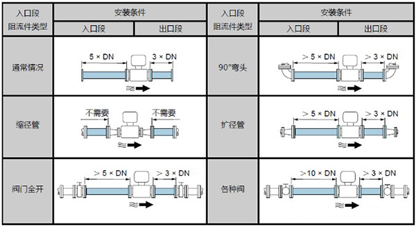 管路必須完全充滿液體。保證管路始終充滿液體至關(guān)重要,否則流量顯示會受到影響,而且還會出現(xiàn)測量錯(cuò)誤。管路結(jié)構(gòu)的設(shè)計(jì)必須要保證測流管始終充滿流體。當(dāng)流體有分流或含有固體顆粒沉淀物時(shí),建議使用垂直安裝。但采用垂直安裝時(shí),要遵循流體從下到上的走向,以保證管路充滿流體。