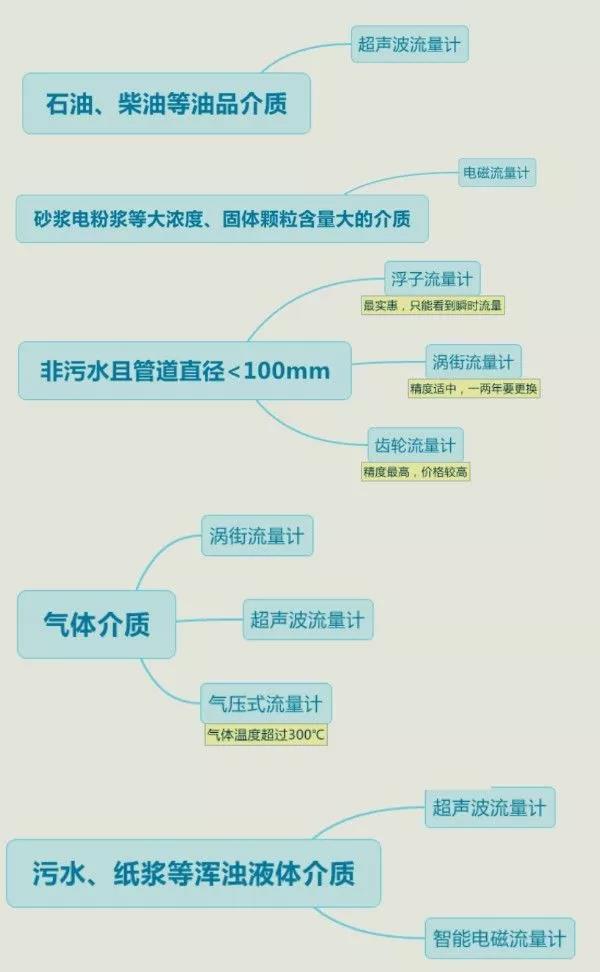 為了保證流量?jī)x表在生產(chǎn)現(xiàn)場(chǎng)過程中發(fā)揮*好、*精確的使用,工業(yè)水流量計(jì)的選擇,一般情況下,必須要根據(jù)生產(chǎn)現(xiàn)場(chǎng)需要計(jì)量的介質(zhì)而定。這是凱銘儀表根據(jù)所測(cè)物的介質(zhì)不同所做的圖,望收藏。