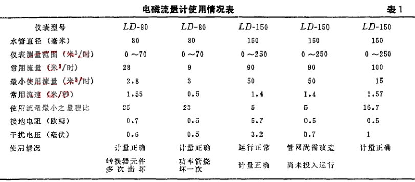 我廠自1981年3一8月,分別對四個車間的用水點安裝了五臺儀表,每臺配用一支DX S-102積算器,測定的是生產用水,溫度為常溫,電導率為1.2x10-3姆歐,安裝方式為水平有旁路伐(見表1)。