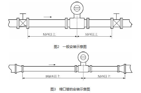 dn200污水流量計(jì)的安裝質(zhì)量對(duì)其測(cè)量結(jié)果的影響較大,因此在安裝時(shí)需要注意幾個(gè)問(wèn)題。*先,dn200污水流量計(jì)直管段的選擇在配管時(shí)一定要按照要求進(jìn)行選擇,一般選擇流量計(jì)通徑與工藝管道通徑相同,即可滿足工程需要,而且安裝方便、壓力損失小,流量計(jì)直管段上游側(cè)的長(zhǎng)度不少于5倍工藝管道直徑,下游側(cè)的長(zhǎng)度不少于3倍工藝管道直徑(圖2)。但在流速太慢而又要求精度較高或需要變徑的應(yīng)用場(chǎng)合,可選擇通徑小于工藝管道通徑的流量計(jì),以提高測(cè)量精度,此時(shí)流量計(jì)上、下游必須加裝異徑管,且進(jìn)口異徑管上游側(cè)應(yīng)有長(zhǎng)于10倍工藝管道直徑的直管段,下游側(cè)應(yīng)有長(zhǎng)于5倍工藝管道直徑的直管段(圖3)。