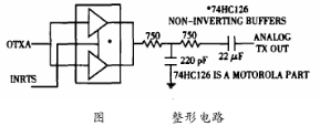 如圖4所示,緩沖器74HC126的作用是使方波的上升沿和下降沿趨于平緩,使信號(hào)滿(mǎn)足HART物理層規(guī)范所要求的信號(hào)波形上升沿和下沿的時(shí)要求,因?yàn)檩^平緩的上升沿和下降沿時(shí)間可以降低與其它網(wǎng)絡(luò)間的串?dāng)_。