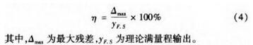本文采用*小二乘法進行線性度評定,即擬合直線為*小二乘直線。*小二乘直線保證了傳感器至*輸出的平均值對它的偏差的平方和為*小,即可以保證擬合直線得到的結(jié)果與實測結(jié)果之間的偏差很小,更具可靠性。根據(jù)定義,線性度即是校準曲線對這條*小二乘擬合直線的偏離程度。