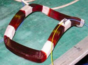 由此可見,一體式電磁流量計正常運行需要有穩(wěn)定的磁場,而磁場正是靠傳感器線圈內(nèi)的 勵磁電流來產(chǎn)生的。勵磁線圈如圖2所示。